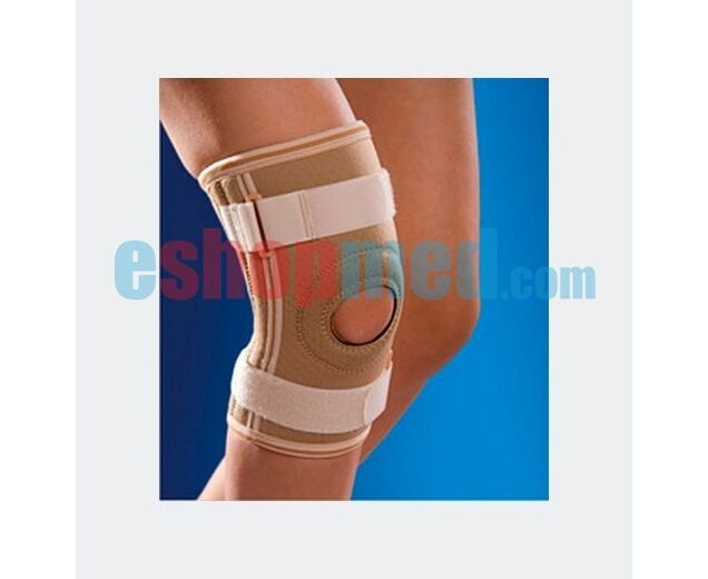 Επιγονατίδα από Neoprene με εσωτερική επένδυση από βαμβάκι, τρύπα για την επιγονατίδα, μαξιλαράκι για συγκράτηση της επιγονατίδας με 4 σπειροειδή ελάσματα στα πλάγια και δύο δέστρες για καλύτερη σταθεροποίηση.