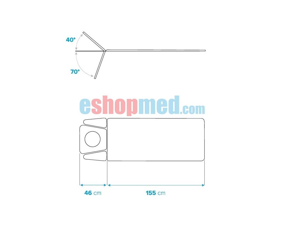 - Ανακλινόμενο προσκέφαλο ρυθμιζόμενο από -70° έως +40° μέσω πνευματικού ελατηρίου,